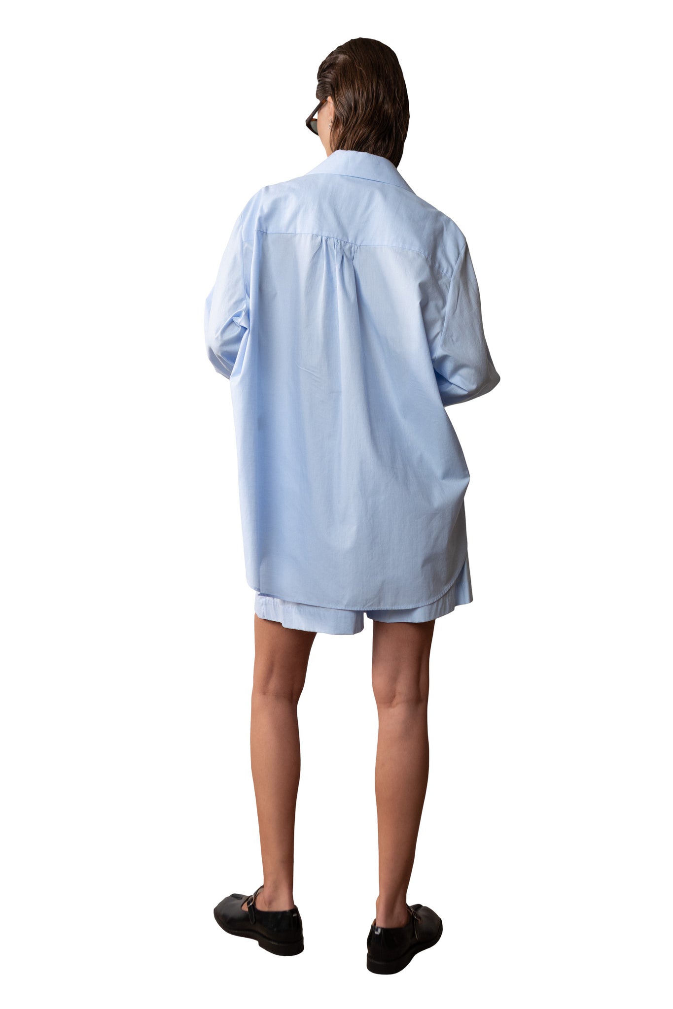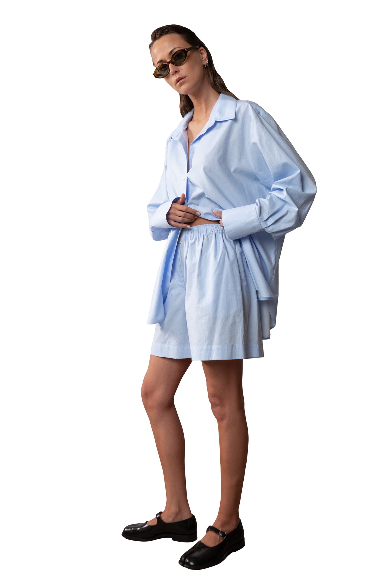 Tailored minimalism for warm days and long nights. Crafted from a soft and elegant fabric, this relaxed set brings structure without restriction. The oversized silhouette contrasts clean lines with easy movement