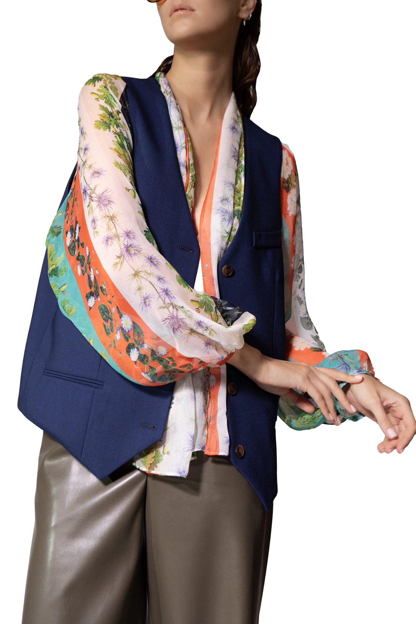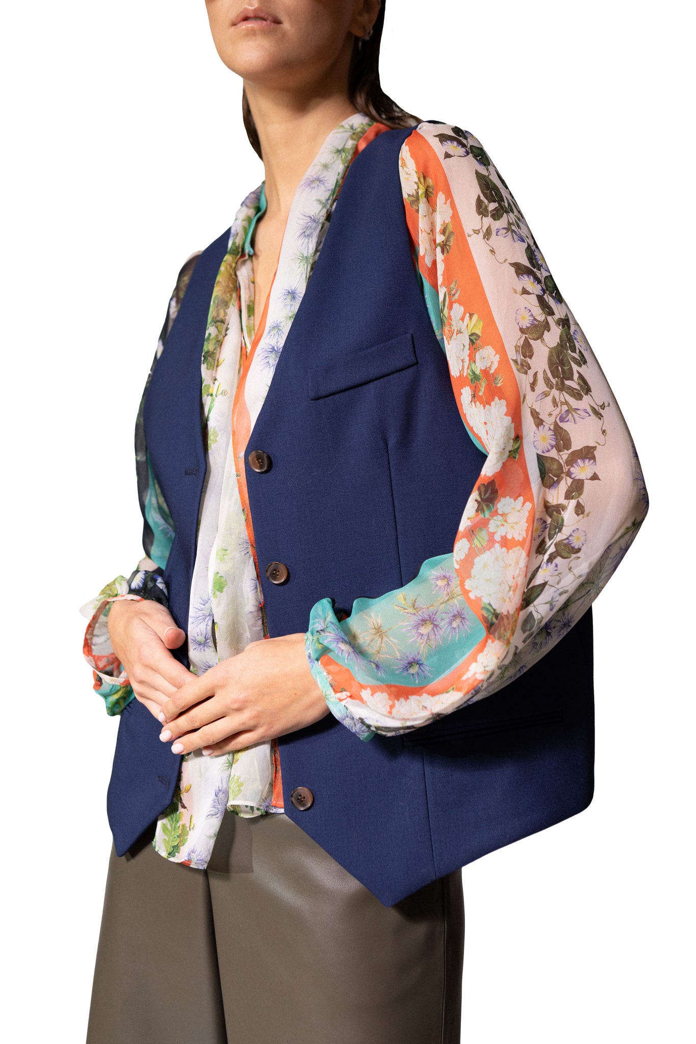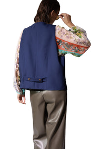 It captures the oversized, dark blue and versatile vibe. Wear it over shirts and blouses to elevate your look with statement layer piece