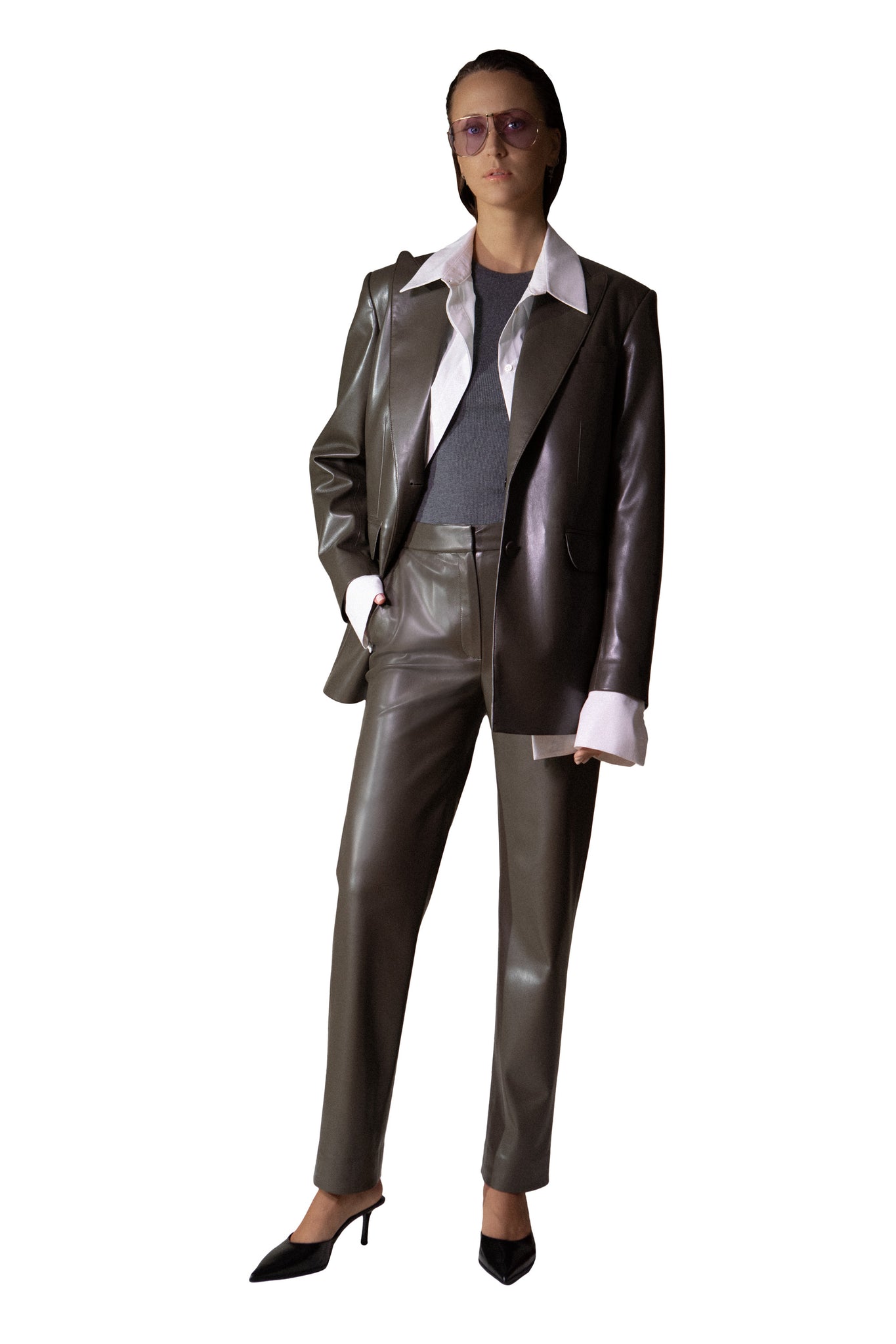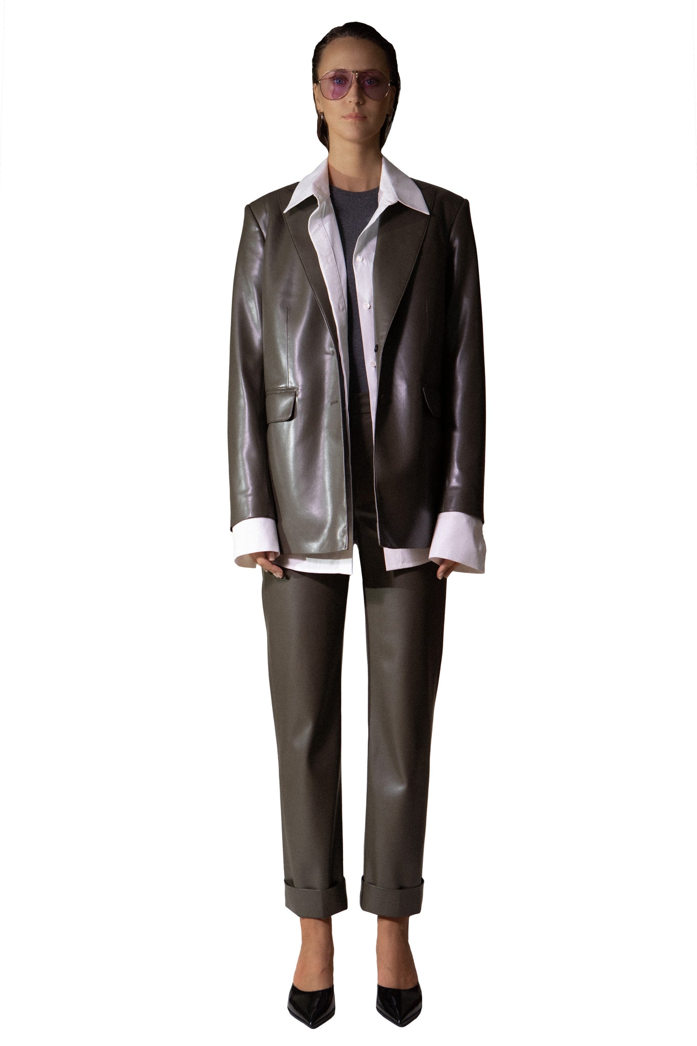 CASCADES FAUX - LEATHER BLAZER KHAKI