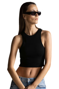 Ride the ‘oomph’ wave with confidence. Ribbed cotton crop top for days with a little extra of hotness