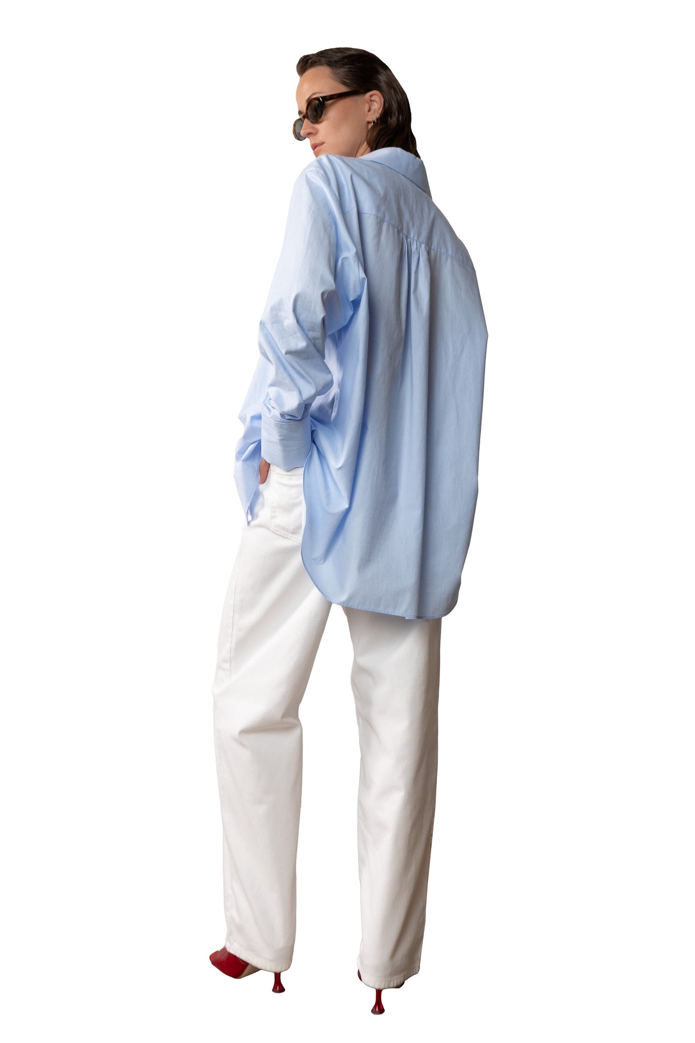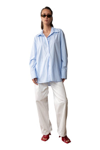 Tailored minimalism for warm days and long nights. Crafted from a soft and elegant fabric, this relaxed shirt brings structure without restriction. The oversized silhouette contrasts clean lines with easy movement