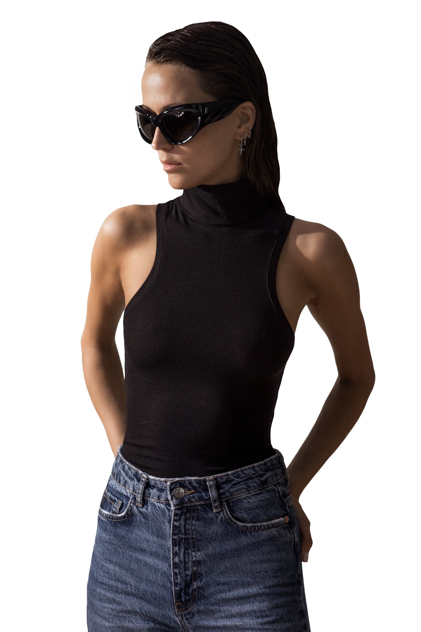 SOFT WHISPER TURTLE NECK TOP BLACK